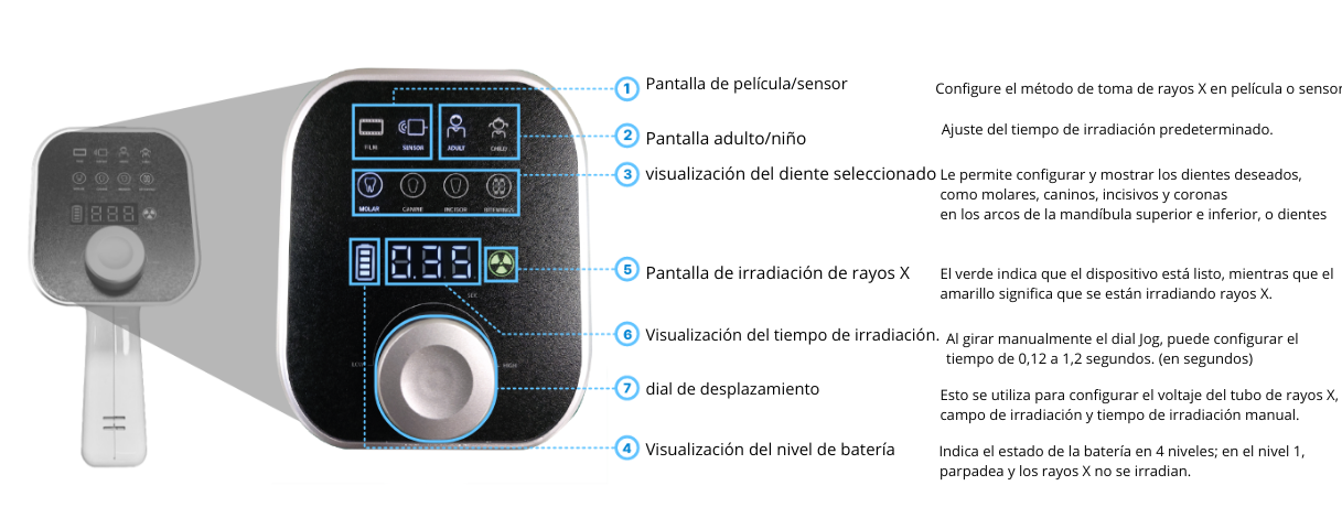 2).Seleccione todas las funciones y condiciones de irradiación con un dial